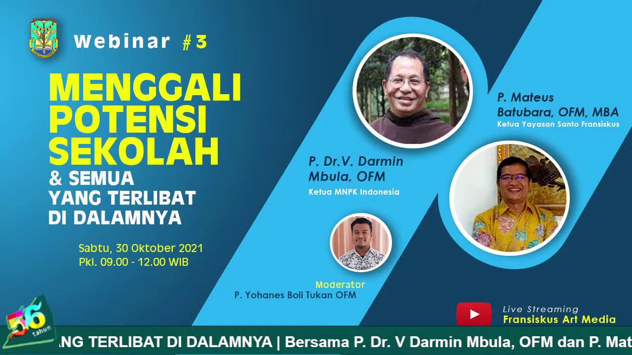Para pembaca yang budiman, masih dalam rangka perayaan Hari Ulang Tahun yang ke-56, Yayasan Santo Fransiskus Jakarta, diselenggarakan acara webinar pendidikan yang diikuti oleh para guru pendidik dan tenaga kependidikan bersama warga tujuh unit Satuan Pendidikan dalam naungan Yayasan Santo Fransiskus Jakarta.